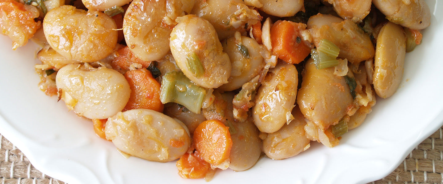 A delicious and beloved vegetarian dish found throughout Greece is gigantes sto fourno or “Giant Dried Beans in the Oven”. Back in the day when meat was considered a delicacy and often eaten only once a week, pulses such as these were often eaten to sustain the body through the hard-working days of harvest season.