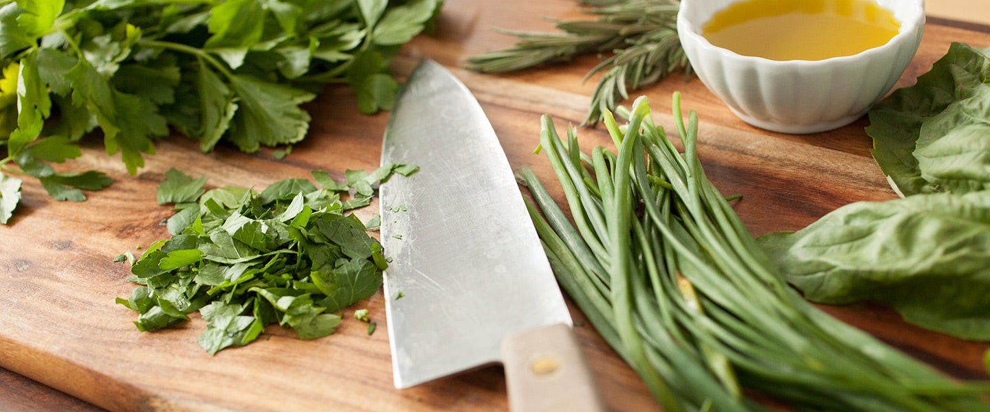 The simplest of pasta dishes comes from the summer garden. Grab a few handfuls of your favorite herbs and dinner will be ready in 20 minutes.