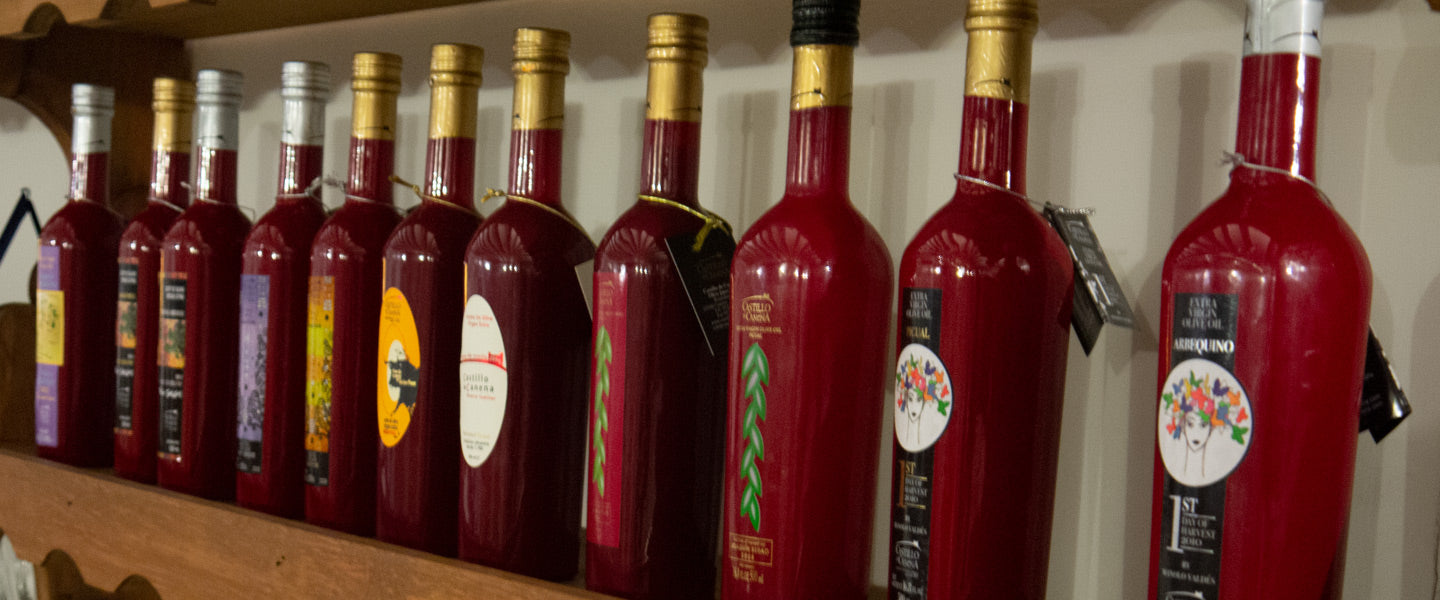 Eagerly awaiting to try their new harvest oils, Francisco guides us through the castle down a flight of stairs to their impressive tasting room. Company news articles and awards adorn each wall, floor to ceiling, and sitting on the dark wooden bar is a bottle of each of their olive oils, fresh from the 2012 harvest and only a couple days old.