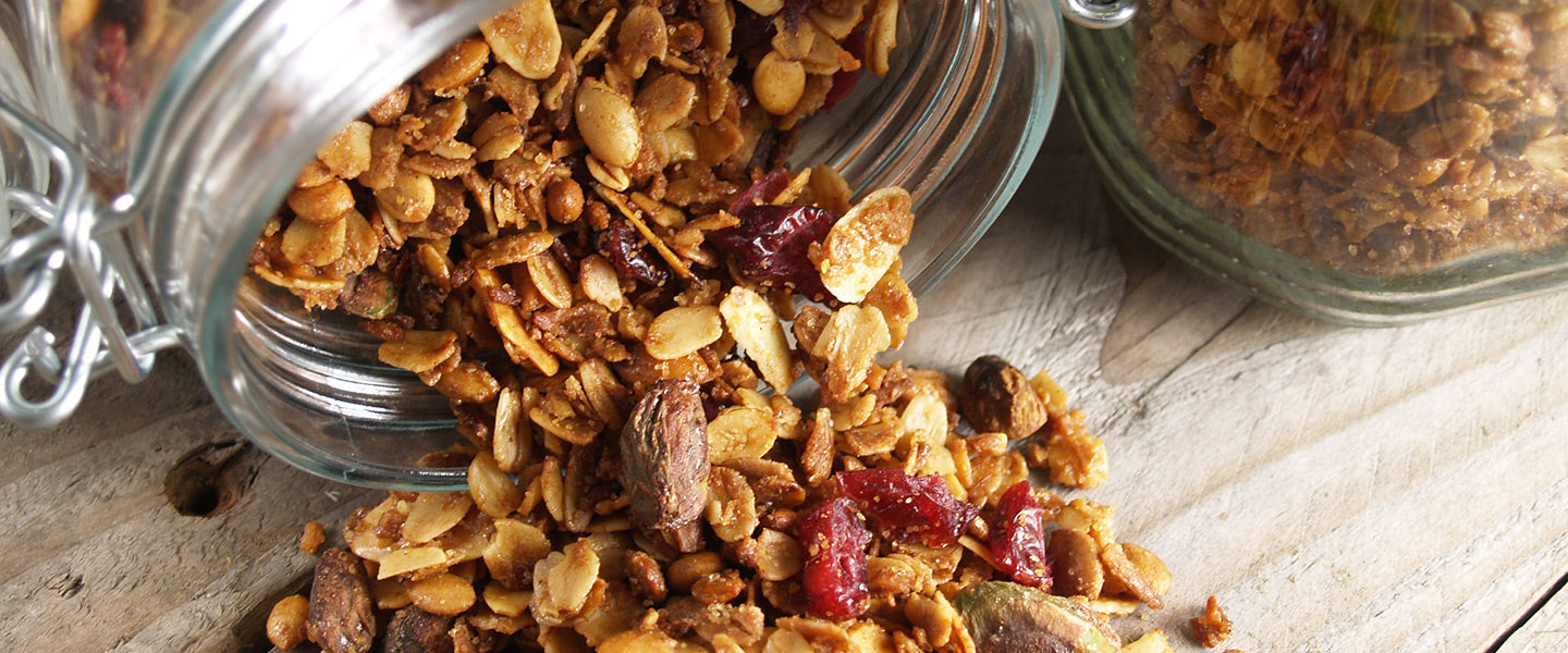 Bake for approximately one hour, stirring every 15 minutes until golden brown. Transfer granola to a large bowl and combine with dried cherries. Allow to cool before storing in glass jars.