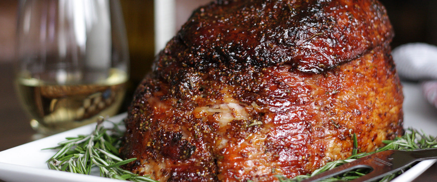 With the holidays fast-approaching, many of you are finding yourselves scrambling to plan the perfect meal for family and friends. For those of you dreaming of enjoying a succulent roasted ham this holiday, try a rub of flavorful extra virgin olive oil, garlic and rosemary with a succulent glaze of honey and whole-grain mustard. The perfect combination of sweet and savory, this recipe is sure to please your hungry guests.
